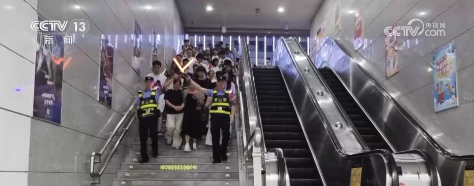 盛会结束,公安与武警官兵组成藏蓝人墙如坚固屏障般引导人流,市民游客自觉沿着指引方向前行。原本密集的人群如同被梳理的溪流,沿着预设通道有序分流,安全高效完成了人流疏散。交通保障同样体现温度,南昌地铁警察支队增派警力、科学布警,有序引导客流。地铁集团全线列次列车、延长运营时间、闸机免费开放,助力游客快速返程。