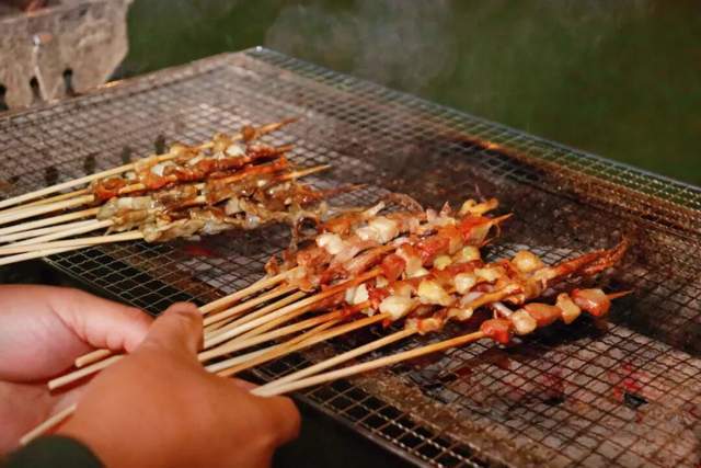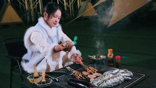 在鱼水营地围炉烧烤,尝阳山鸡、河鲜、本地特色菜,和家人朋友围坐闲谈,把春日的烟火气吃进心里。