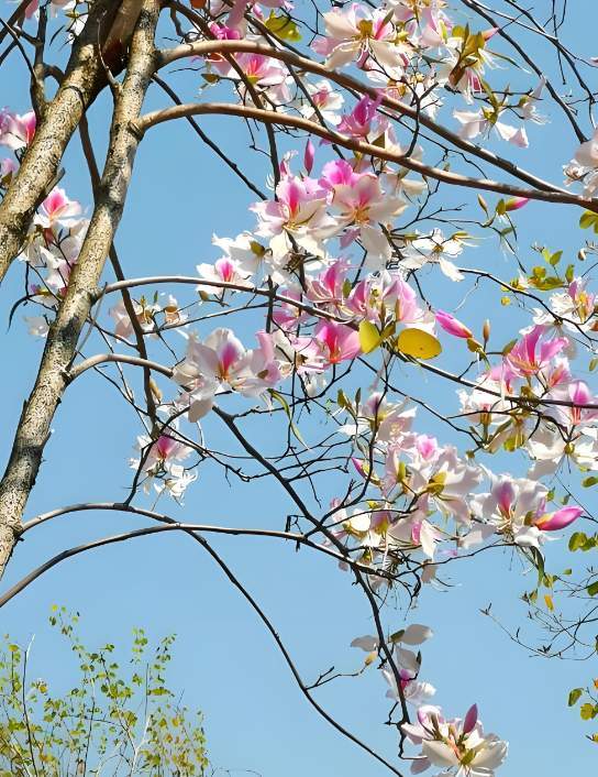 加拿大紫荆(清远人亲切叫“红花倒吊莲”)与洋紫荆迎来盛花期,漫山粉紫、临水绽放,网红树次第盛开,一步一景,满目浪漫。