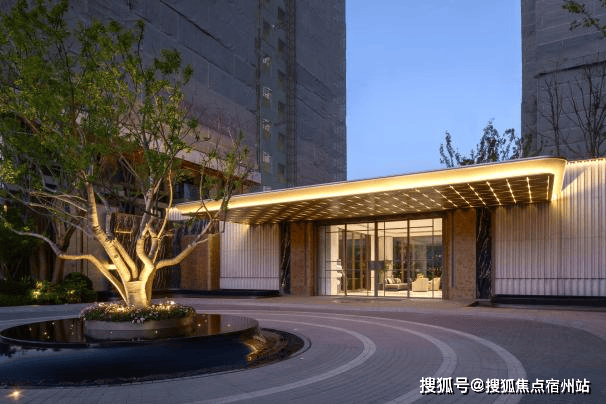 外立面采用蓝灰色Low-E玻璃+米白与香槟金搭配,搭配简洁几何线条,现代感与质感兼具,同时具备隔热、保温、防紫外线等功能,兼顾美观与实用。石材亚马逊绿、春晓翠鸣奢石等奢石的运用,进一步提升社区品质感。
