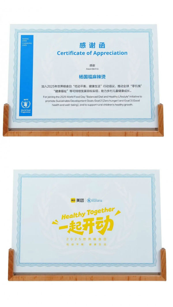 10月15日,在世界粮食日前夕,杨国福集团作为首批倡议伙伴,正式加入由美团与联合国世界粮食计划署(WFP)共同发起的“吃动平衡健康生活”行动倡议,并参与“一起开动 Healthy Together”主题活动,与多方力量一道推动全民健康生活方式的普及与实践。