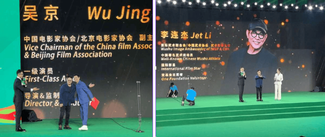 据峨眉官方公众号“微峨眉”,在备受关注的形象大使授牌仪式上,国际武联为对武术推广作出杰出贡献的李连杰、吴京二人颁发了荣誉奖项。同时,吴京作为新的形象大使,与李连杰完成了庄重的交接仪式。