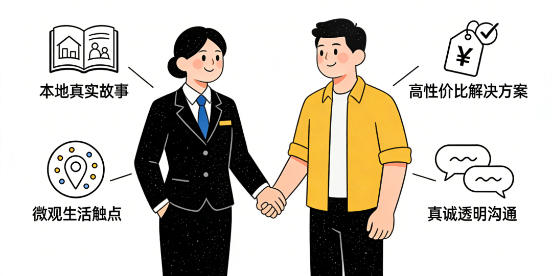 彻底告别抽象化、同质化的宣传语,将品牌理念转化为普通人能感知的具体价值。例如,将“普惠金融”转化为“给小店主的应急钱,给上班族的存钱罐”,让品牌定位更接地气。某县域银行将宣传语改为“咱本地人自己的银行,存取款不用绕远路,办业务不用看脸色”,直白传递本地化、人性化优势,迅速获得居民认同。