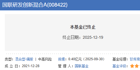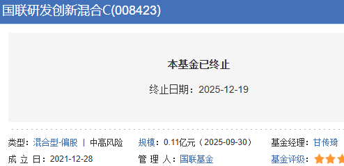 该基金最后运作日为2025年12月18日,自2025年12月19日起进入清算程序。