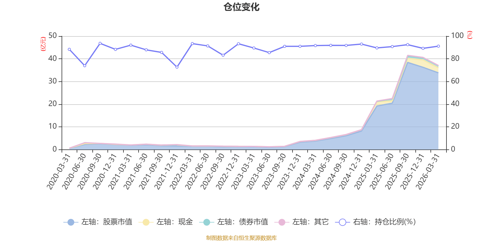 据定期报告数据统计,近三年平均股票仓位为90.78%,同类平均为86.67%。2020年三季度末基金达到93.68%的最高仓位,2021年末最低,为72.69%。