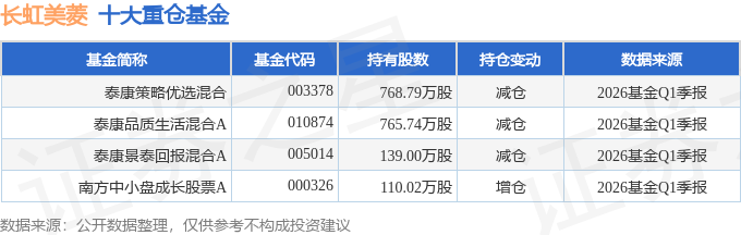 持有长虹美菱最多的基金为泰康策略优选混合,目前规模为12.0亿元,最新净值1.8892(4月22日),较上一交易日下跌0.23%,近一年上涨11.38%。该基金现任基金经理为宋仁杰。